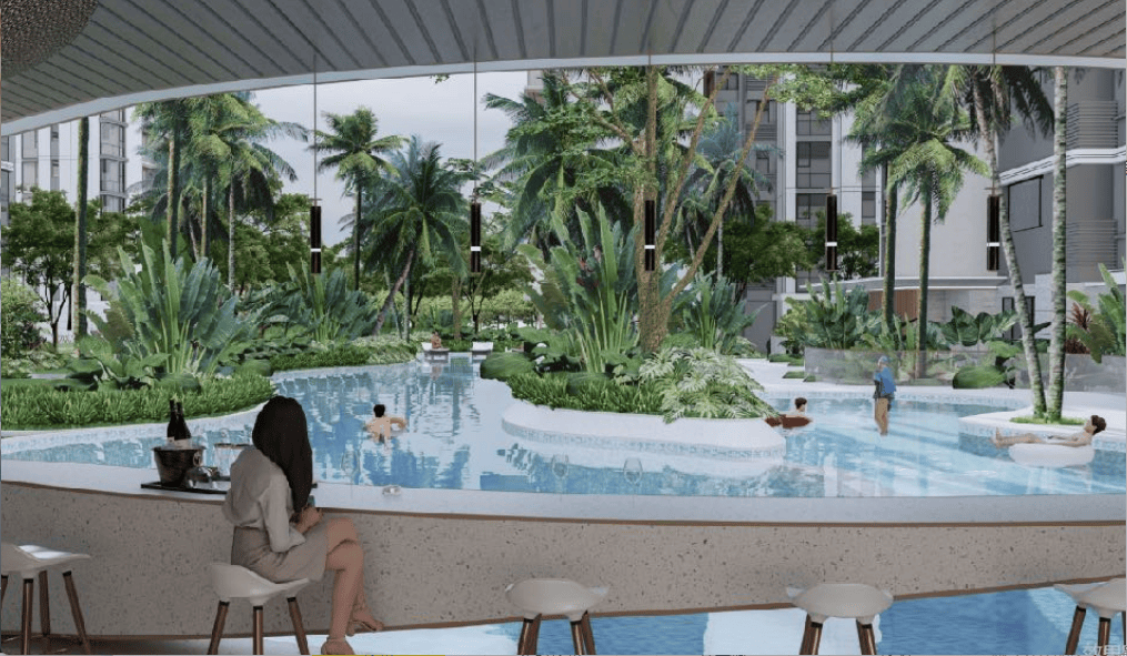 项目配备620㎡全龄泳池、健康跑道、花圃拉伸空间、白叟健身区、半户外活动健身区、休闲瑜伽区等场合,地盘规划蓝绿空间(水域、公园用地)占比达70%以上,